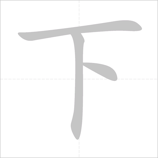 下 (xià) is a character that fundamentally conveys the concept of “downward direction” or “descending.” Its original structure is a simple pictogram that vividly illustrates this meaning.