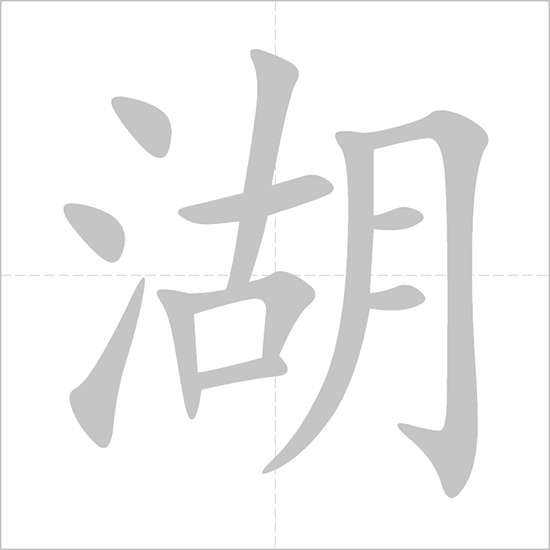 湖 (hú), meaning “lake,” has a structure that reflects the ancient understanding of these bodies of water.