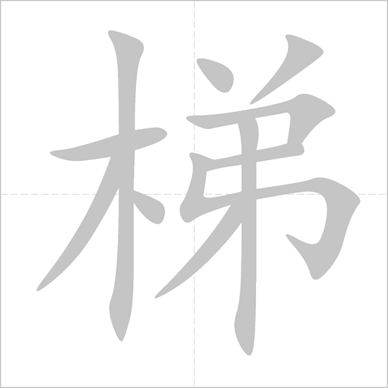 梯 (tī) is a character that represents a tool for ascending, and its structure provides a clear picture of its function.