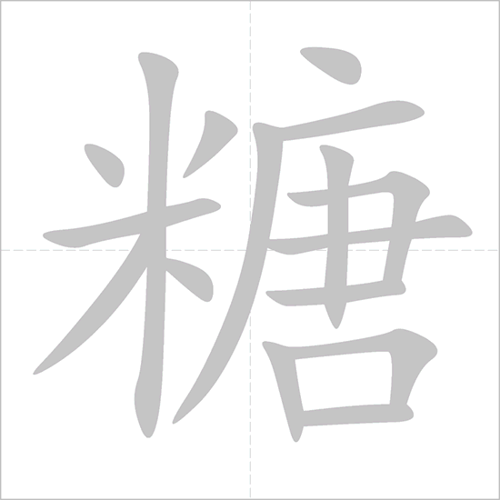 糖 (táng), meaning “sugar,” has a structure that reflects its sweet properties and its origins in ancient food processing.