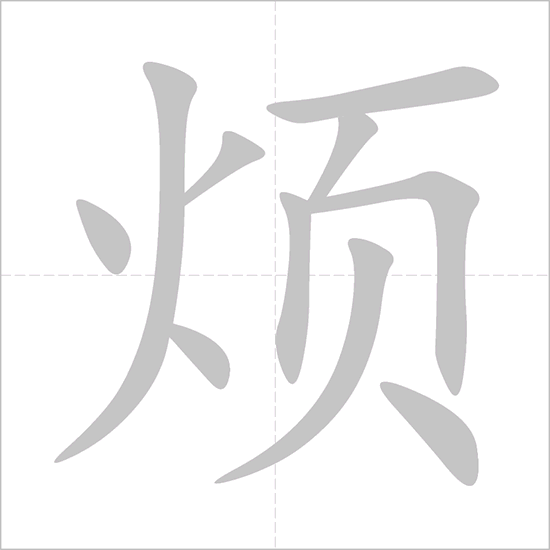 - 烦 (煩 in traditional form – fán): This character means “vexed,” “annoyed,” or “troubled.” It originally depicted a head (页 – yè) with fire (火 – huǒ) above it, symbolizing a state of mental agitation or distress.
