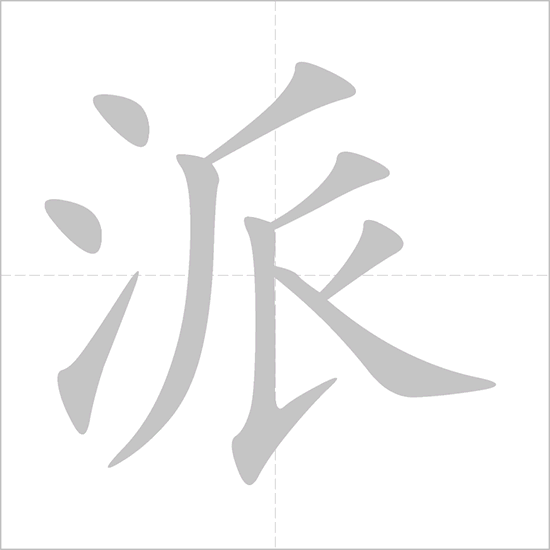- 派 (pài): This character originally meant “to send,” “to dispatch,” or “to assign.” Its original structure depicted water (氵) flowing out (丿) from a source, suggesting distribution or sending forth. Over time, “派” developed various meanings, including “faction,” “school of thought,” “style,” and “manner.”