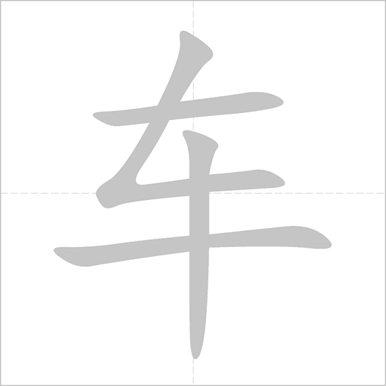 - 车 (chē): This is a pictograph of a vehicle with two wheels, and it broadly represents any mode of transportation, although most commonly a car in modern usage.