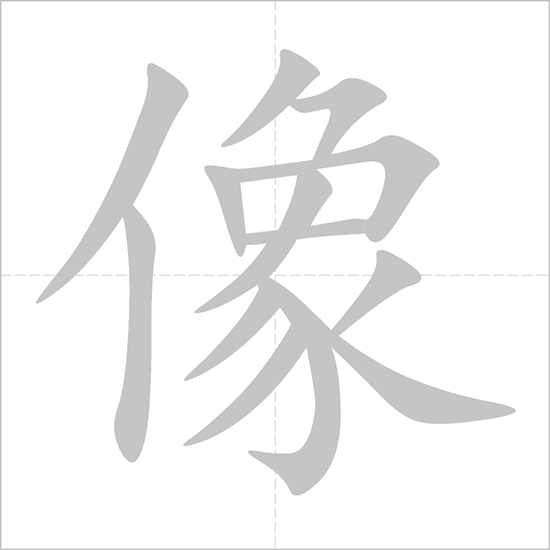 - Original Structure: The character 像 was originally composed of two parts: “人” (rén – person) and “象” (xiàng – elephant). An elephant was seen as a powerful and majestic animal, and the combination of “person” and “elephant” conveyed the idea of imitating or resembling something grand.