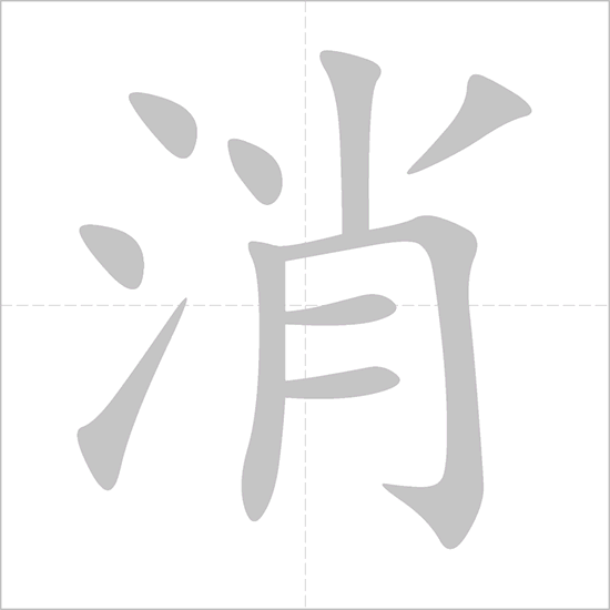 - 消 (xiāo): This character originally depicted water evaporating or diminishing. The top part (氵) is the “water radical,” indicating that the character is related to water. The bottom part (肖) originally represented a small amount or something dwindling. Thus, 消 carries the meaning of decreasing, melting away, or disappearing.