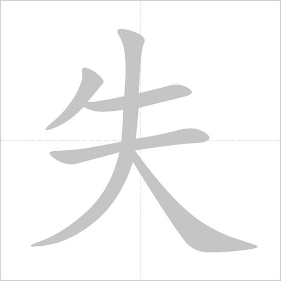 - 失 (shī): This character originally depicted a hand dropping something. The top part (𦣻) represents a hand, while the bottom part (夫) signified a person. Therefore, 失 conveyed the meaning of losing something, missing something, or failing to grasp something.